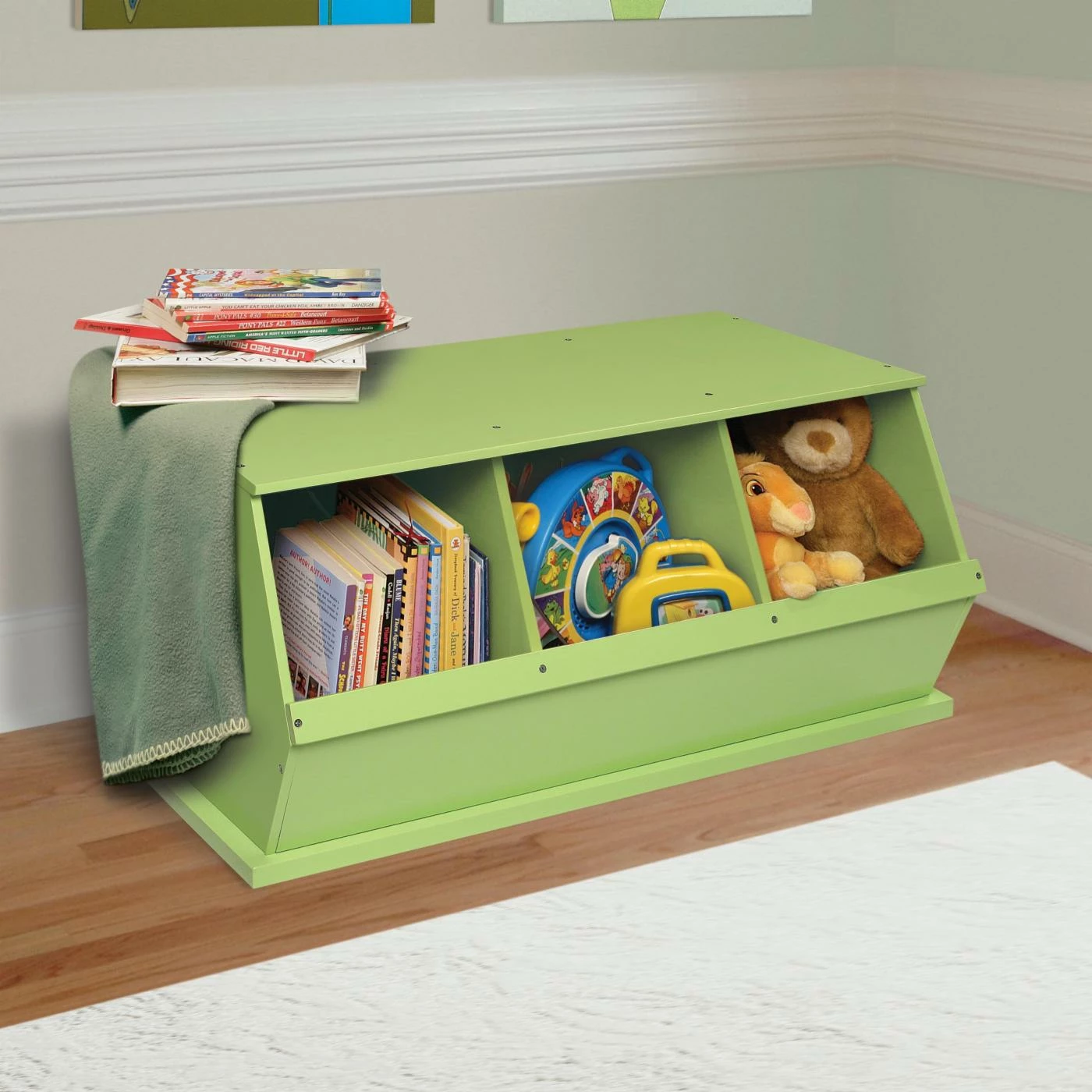 The Montessori way is to provide children with open storage. The Badger Basket Three Bin Storage Cubby makes open storage kid-friendly with three spacious bins to confine and sort. Badger Baskets are an ideal teaching tool to build organization and cleanup into children’s routines from the very beginning. They also lend themselves to the “company’s coming scramble,” as they make it so easy to toss items in and quickly tidy the room. This unit can be stacked with others to expand your storage capacity (each bin unit sold separately; stacking three or more bins high requires professional guidance for securing units to your walls.) Solid panels of wood composite compose this piece, leaving no leeway for items to fall through the back or sides. Illustrated instructions are included for assembly; bring your own screwdriver. Badger Baskets comply with all applicable ASTM safety standards, and they are finished with non-toxic paint in your choice of colors.