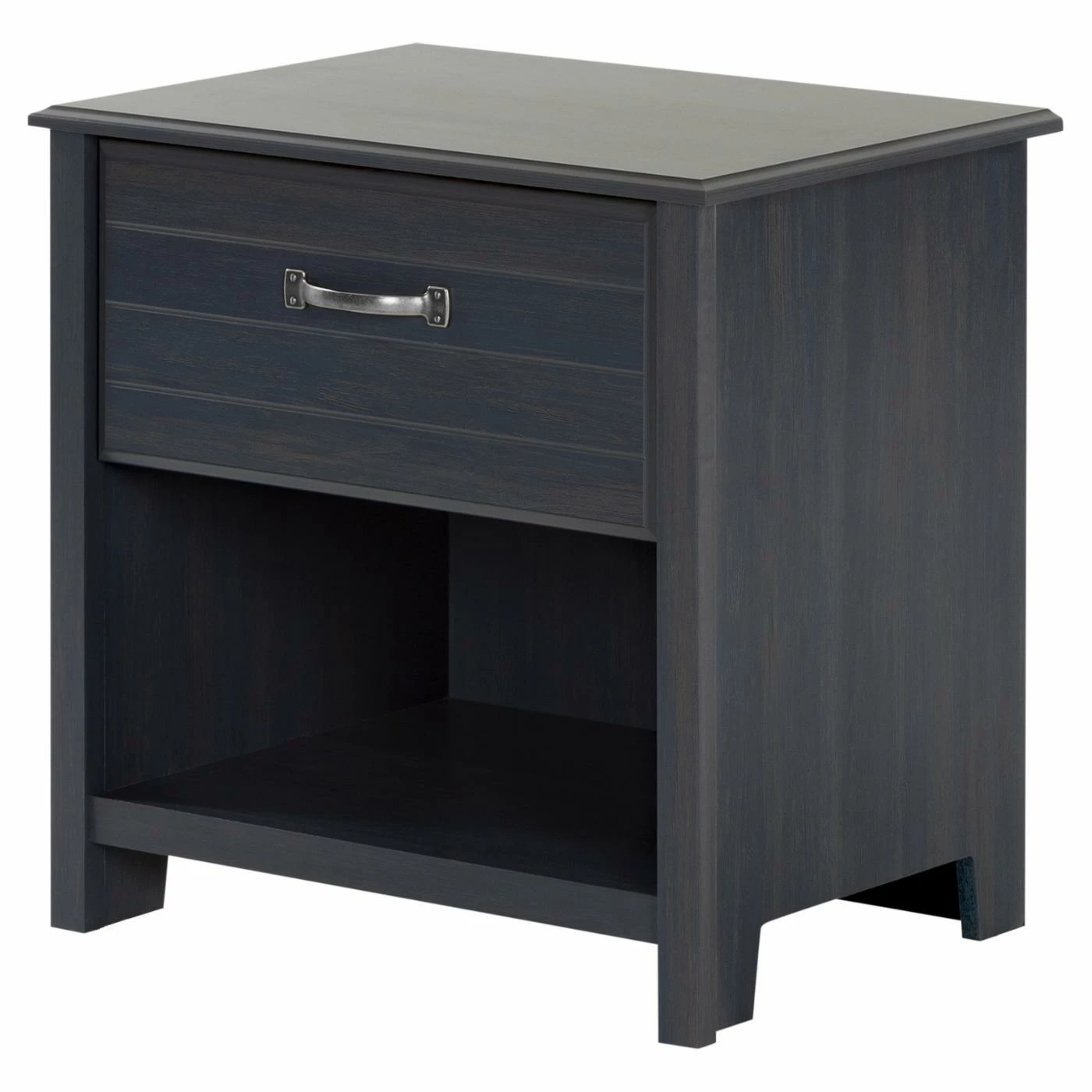 Go coastal chic in your child’s room with the South Shore Ulysses 1 Drawer Nightstand. Drawing inspiration from nautical style, the nightstand features a distressed finish and a rustic antiqued-silver metal handle with riveted detailing. The single drawer adds to the look with its faux slatted design, and it’s easy for kids to open and close, thanks to its metal slides. A lower storage compartment is included in the design for books and other items your little one likes to grab in a hurry.