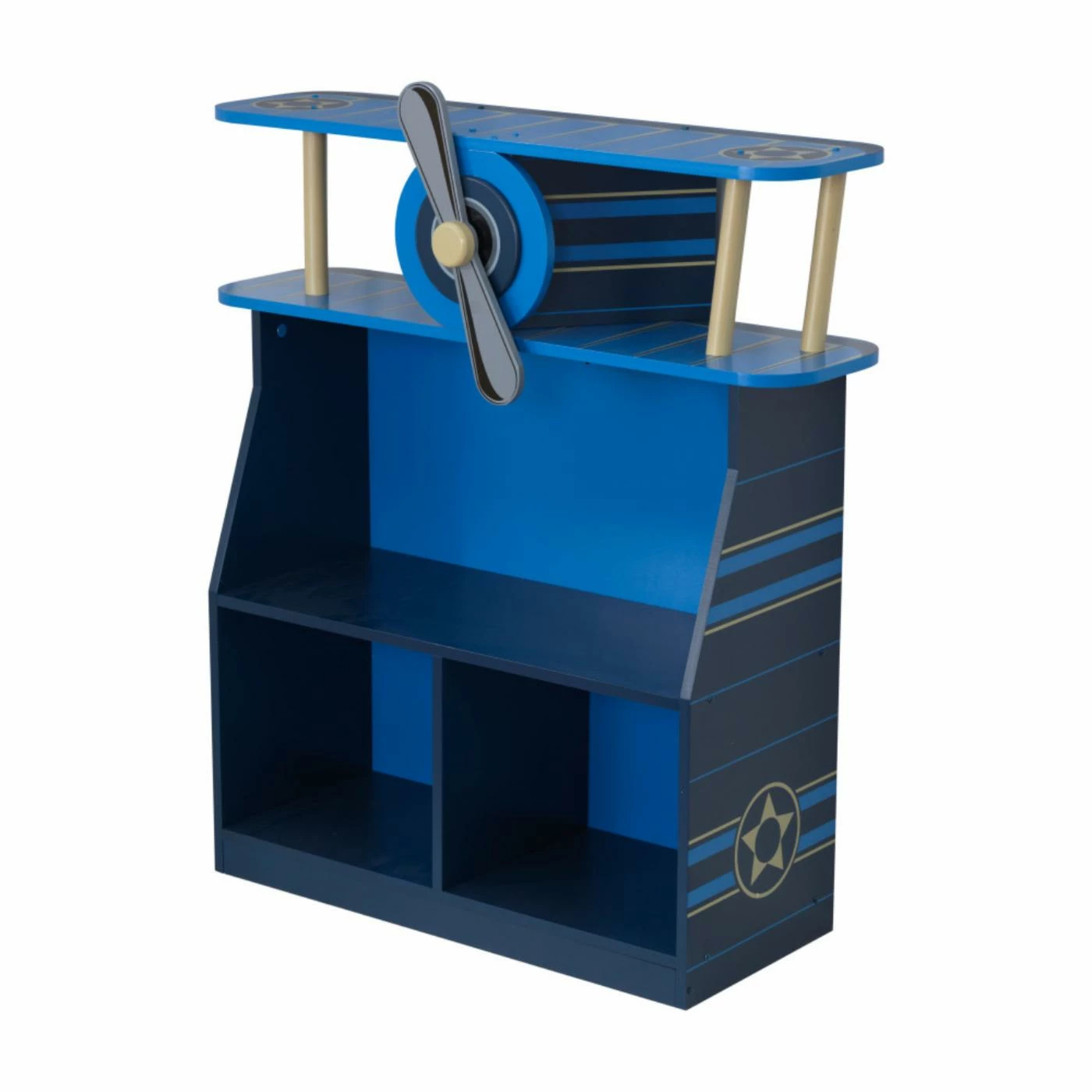 Aspiring pilots will love staying organized with the KidKraft Airplane Bookcase. Bring the wild blue yonder right into his bedroom or playroom with this timeless and unique bookcase with three levels of storage space and a propeller that really spins. Open storage concept is consistent with Montessori principles. Engineered wood construction is painted with high-quality aircraft artwork, making this an enduring favorite that’s destined to remain perpetually in style.