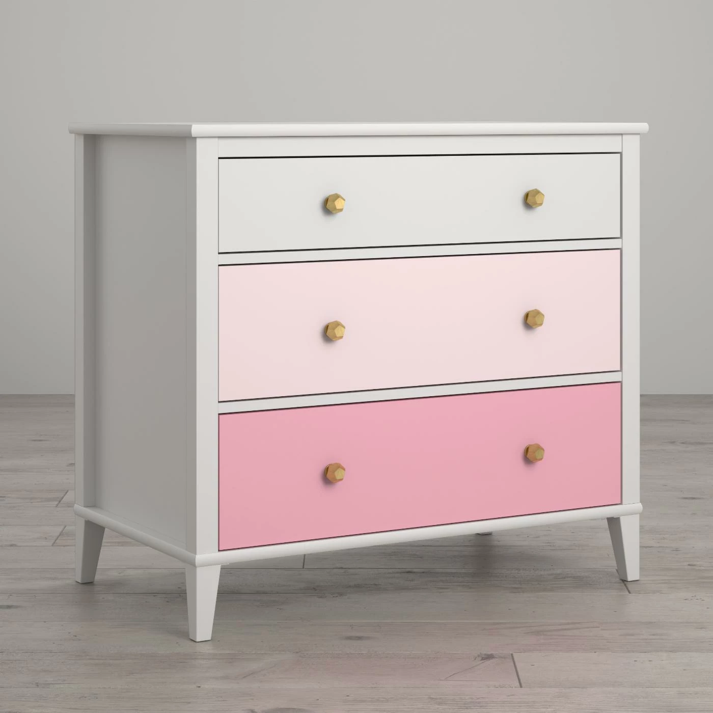 The Little Seeds Monarch Hill Poppy 3-Drawer Chest is a sophisticated and functional addition to your little one’s nursery. This chest boasts sturdy engineered wood craftsmanship and rests on tapered feet. Three drawers offer ample storage space for clothing, diapers, and more. The striking ombre finish is offered in your choice of available colors.