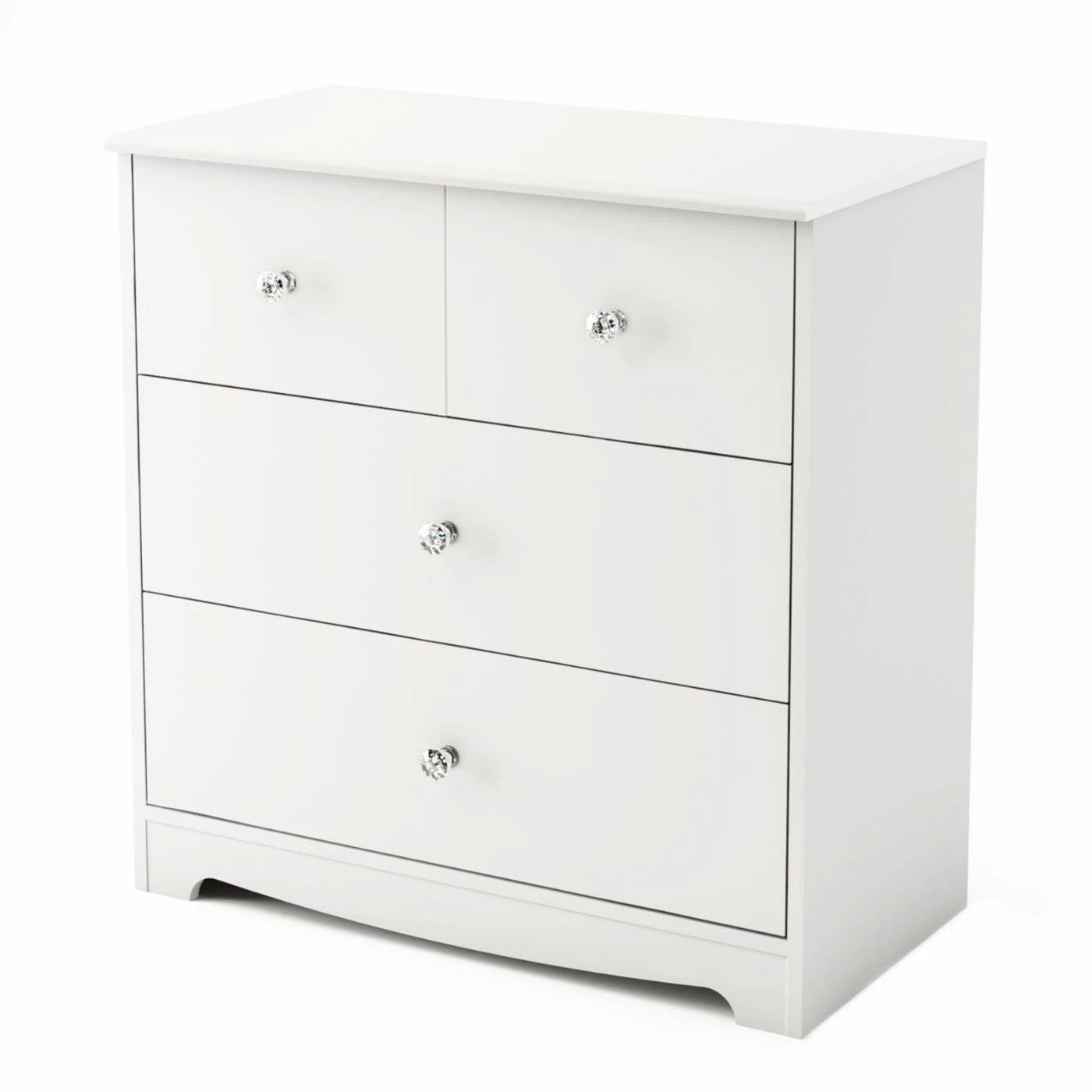 With its plastic crystal knobs and pure white finish, the South Shore Little Jewel 3 Drawer Chest – White is a practical way to dress up your little girl’s room. This chest is built to last from durable engineered wood. Its white finish goes with any decor. It has three generously sized drawers with the illusion of four. All drawers feature metal side guides for smooth operation.