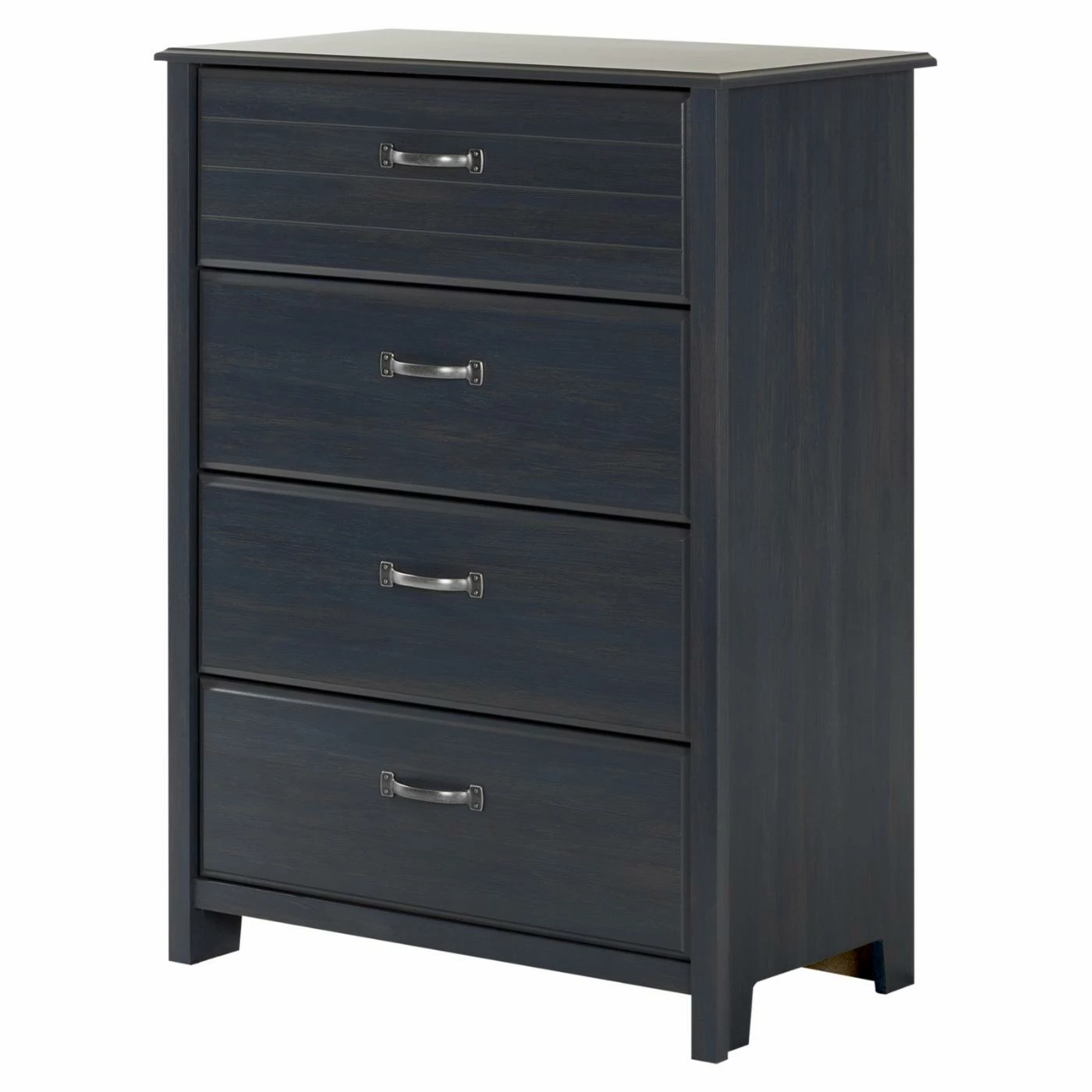 Even if you’re hours from the shore, you can bring a little of the coast to your child’s room with the South Shore Ulysses 4 Drawer Chest. To add rustic chic appeal, the dresser features a faux wood slat effect on its top drawer and four antiqued silver riveted handles. Just the right height to allow kids to reach the top, the dresser features metal slides that make the drawers simple to glide open and closed.