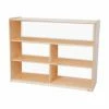 Boots, balls, dolls and big stuffed cows – these oversized cubbies are open wide and ready to gobble up toys, books, and any bulky item that doesn’t fit in other places, until their owners are ready to claim them again. The shelves are 15 inches deep, which means there is more room than many classroom cubbies, plus the extra depth makes it less likely the storage unit will topple if some adventurous, mountain-climbing child gets the urge to rappel. All surfaces are covered with a light-safe, kid-safe high-gloss finish.