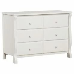 Functionality and style come together, making the Delta Children 6 Drawer Dresser the ultimate buy for your nursery or child’s room. Smooth-gliding drawers with easy-to-grasp knobs are easy for youngsters to handle. Safety stops ensure the drawers can’t come out too far. The finish is impermeable and easy to clean. It’s also tested to ensure compliance with strict standards for lead and other harmful elements. Curved edges extend slightly past the face, creating a cozy transitional look that works with a range of styles.