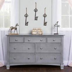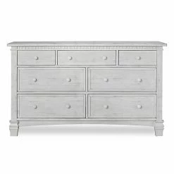 With the Evolur Cheyenne and Santa Fe 7 Drawer Double Dresser, you’ll have all the room you need for your little one’s constantly changing wardrobe. This lovely piece offers an abundance of storage with seven spacious drawers. When your child is young enough, the top serves as a perfect changing surface as well, with the addition of a contour pad (sold separately). As your child grows and their taste changes, this furnishing can remain a permanent fixture, with its classical style and your choice of available finish. The quality construction with dovetailed joints and five-piece drawer boxes, wooden pulls, and side-mounted three-tiered glides ensures a durability that will last for years.