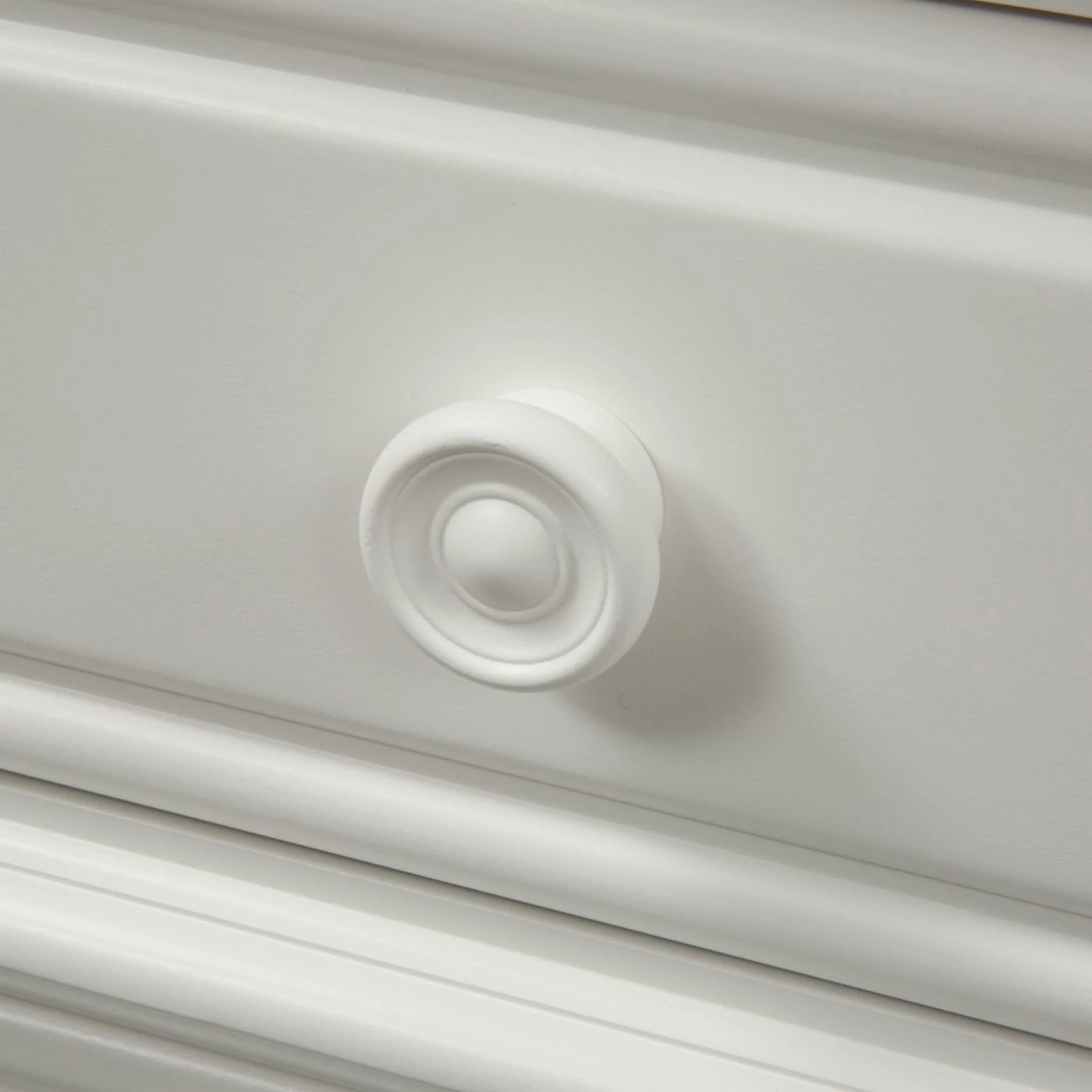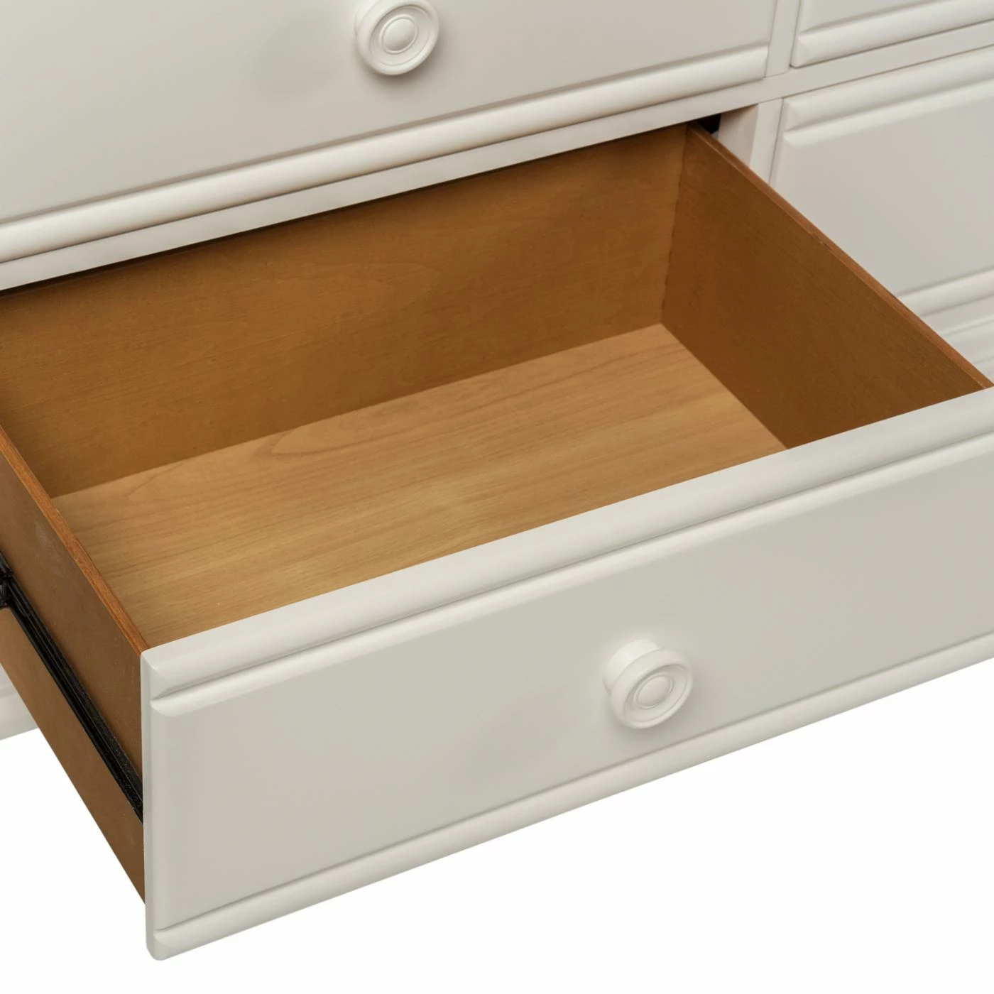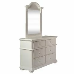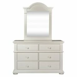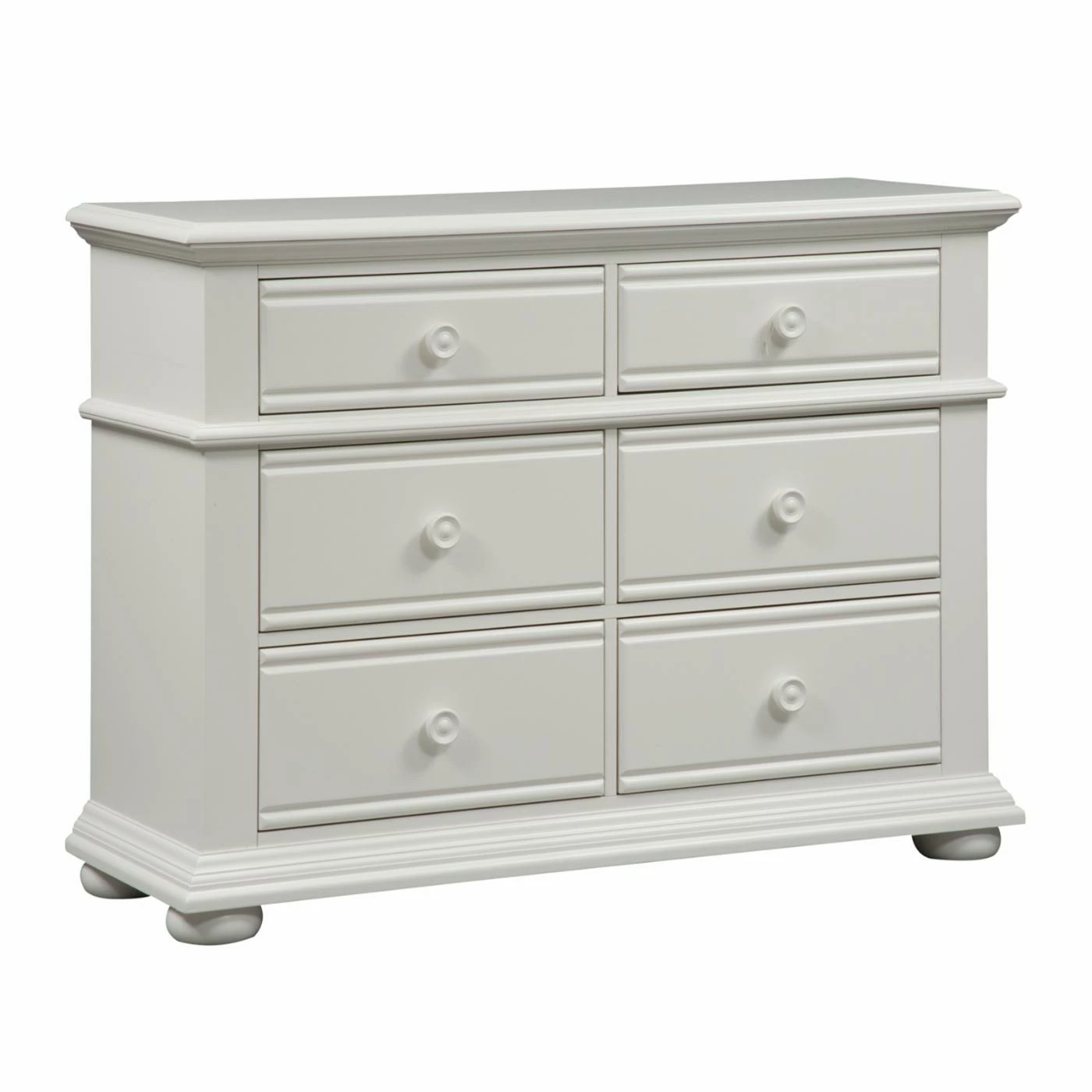 Six side-by-side drawers in the Liberty Furniture Industries Summer House Youth 6 Drawer Dresser with Optional Mirror – Oyster White ensure abundant storage space. This dresser also offers a roomy top for display pieces. Cottage charm comes from its bead board drawer fronts, bun feet, and oyster white finish. Complete the look of this dresser by adding the optional, matching mirror. It attaches securely to the back.