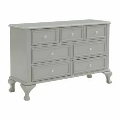 Grace your daughter’s bedroom with plenty of storage and timeless style by adding the Picket House Furnishings Jenna Dresser and Mirror Combo. Premium woods and gumtree veneers are bathed in a choice of soft finish and accented by crystal-like knob hardware. The dresser features three smaller and four larger drawers, all with premium wood glides and both French and English dovetail construction. Choose from the available configuration options.