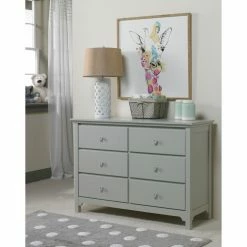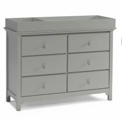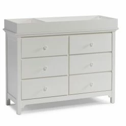The first months with your new baby can be a hectic time; stay a little more organized with the Ti Amo 3000 Series Double Dresser. Six spacious drawers provide storage space for diapers, changing supplies, toys, and clothes. The understated style of the double dresser and your choice of available finish allow you to match this piece to your nursery decor. You can order this dresser on its own, or add the dressing kit. The kit fits securely on top for an easy diaper changing system. A fastening bracket will keep the kit in place.