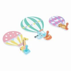 Hanging in your child’s room, the Fantasy Fields Hot Air Balloon Wall Hook – Set of 3 provide opportunities for independence. These hooks can be used to hang the next day’s clothes out or as a place to keep a backpack and lunchbox. Each hook is made of engineered wood and decorated with an animal in a hot air balloon. The designs are hand painted in a soft, pastel color palette with non-toxic paints. Pair this set with other items from the Hot Air Balloons Collection for a coordinated look.