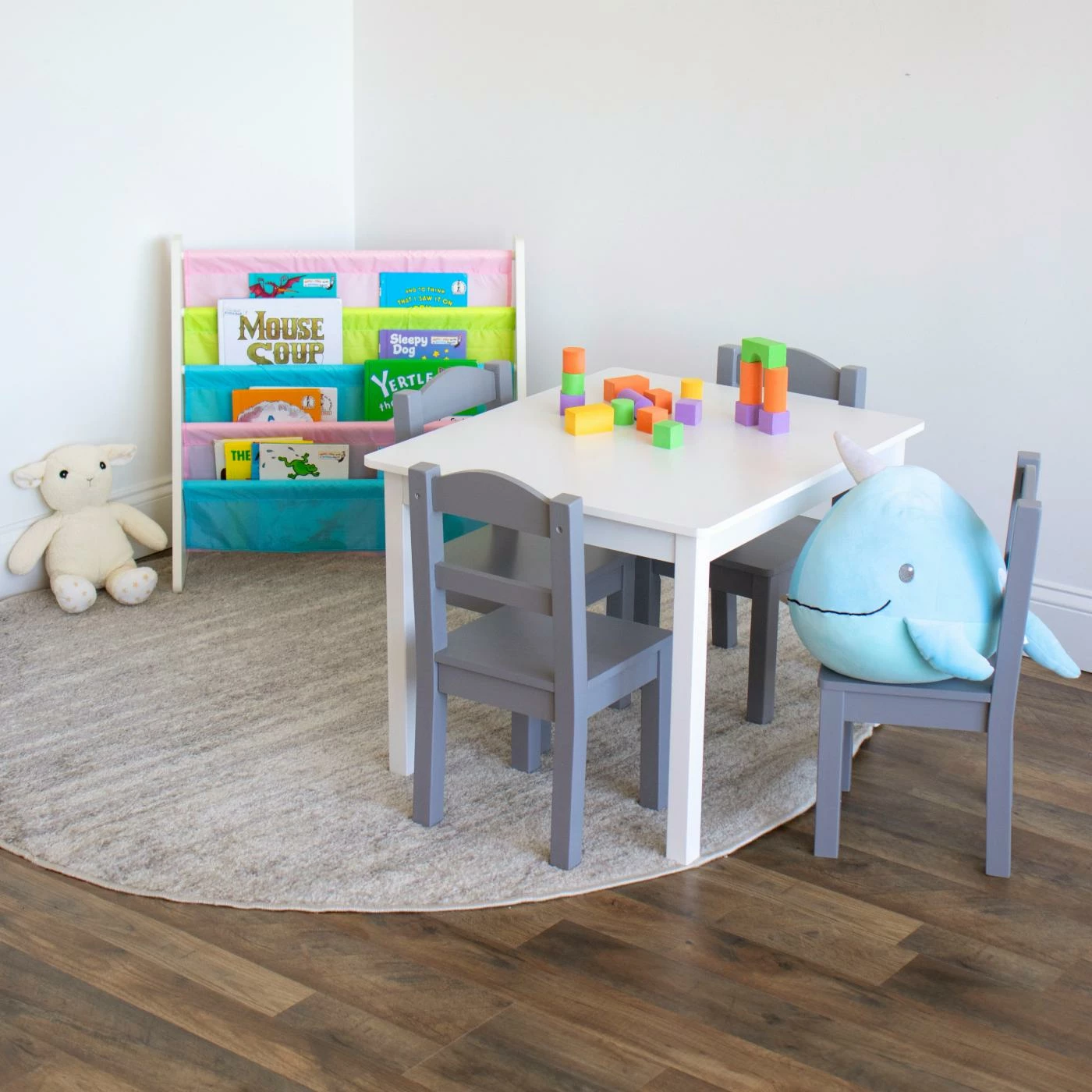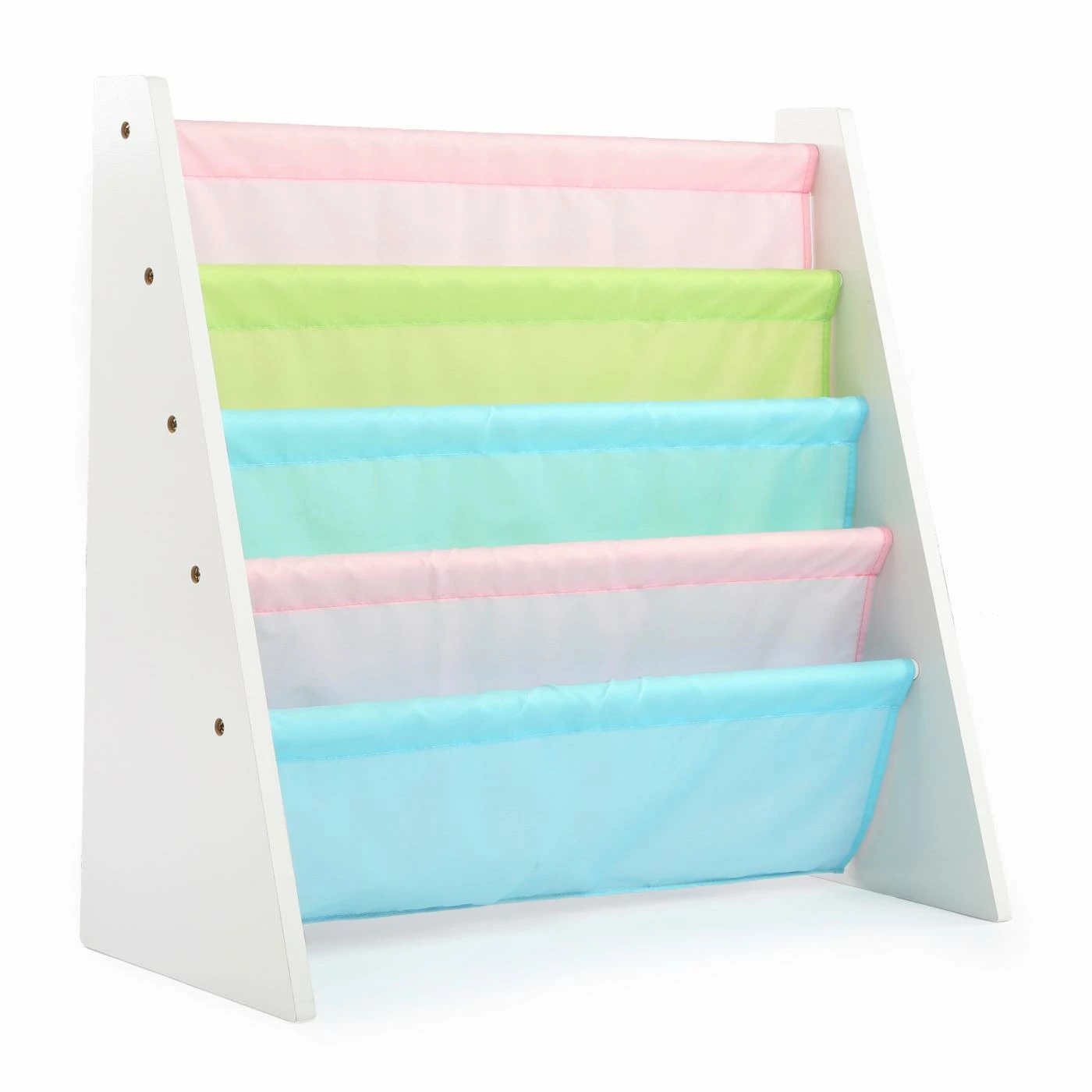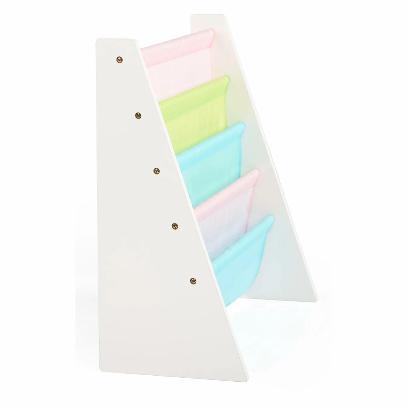 The innovative and space-saving Tot Tutors Pastel Kids Bookshelf displays your child’s books with the covers forward, enticing them to read. This book rack is built of sturdy wood and available in your choice of finish. The four fabric pockets come in assorted colors.