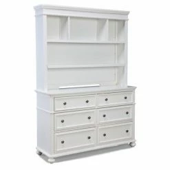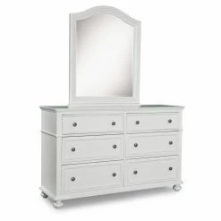 Add spacious storage and a stylish look to any room with the Madison 6 Drawer Dresser – Natural White. Perfect for a growing wardrobe, this dresser offers generous drawers that open on full extension glides. Made of poplar wood and birch veneers, it features a crisp, natural white finish that offers a clean look. Add the optional hutch for even more storage space for toys, books, or display items, or combine it with the matching mirror to liven up your living space. Mirror dimensions: 33W x 2D x 40H in., Hutch dimensions: 56W x 11D x 44-48H in.