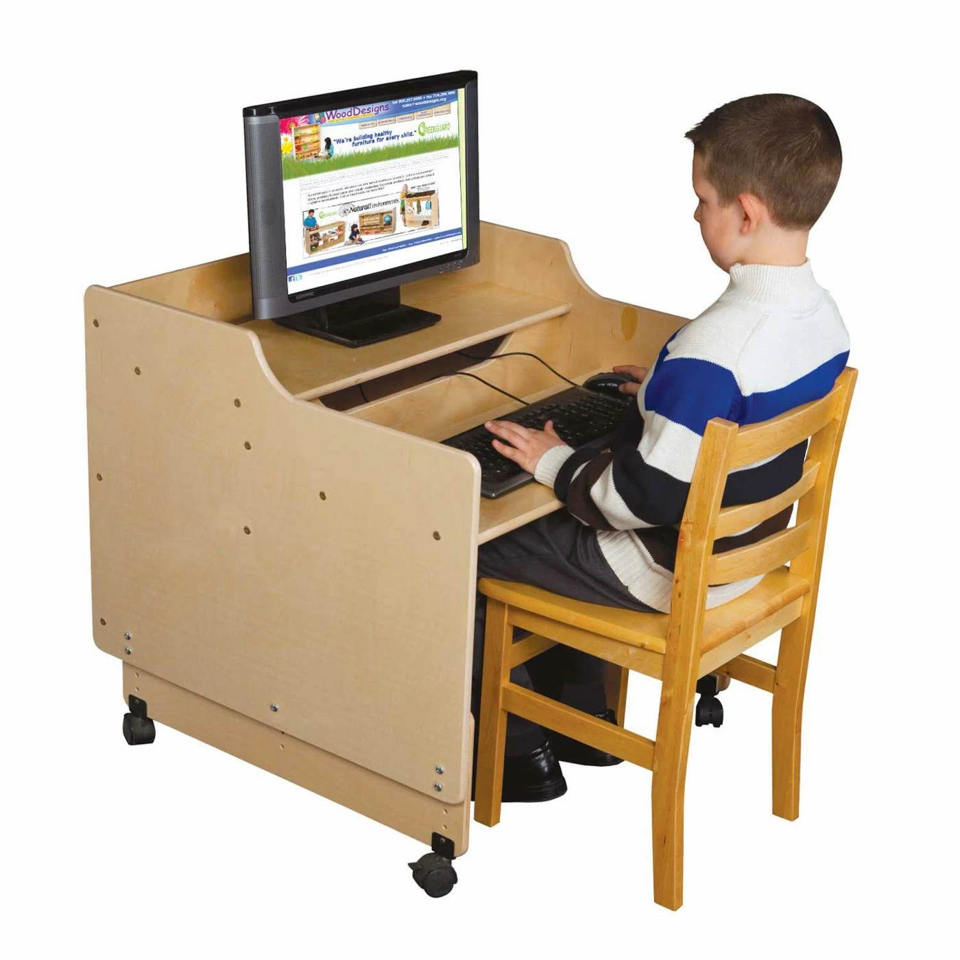 If youβve got a future Silicon Valley savant on your hands, theyβll love the Wood Designs Contender 30 in. Mobile Computer Desk. With ample space for a monitor, keyboard, and mouse, this computer desk can be adjusted from 23 to 28 inches high to accommodate budding programmers in a range of sizes. Keyboard height ranges from 18.25 to 21.25 inches high, and the desk is crafted entirely of eco-friendly Healthy Kids plywood thatβs covered in a Tuff Gloss UV finish that wonβt emit harmful contaminants (VOCs) into the air. Includes heavy-duty locking casters.