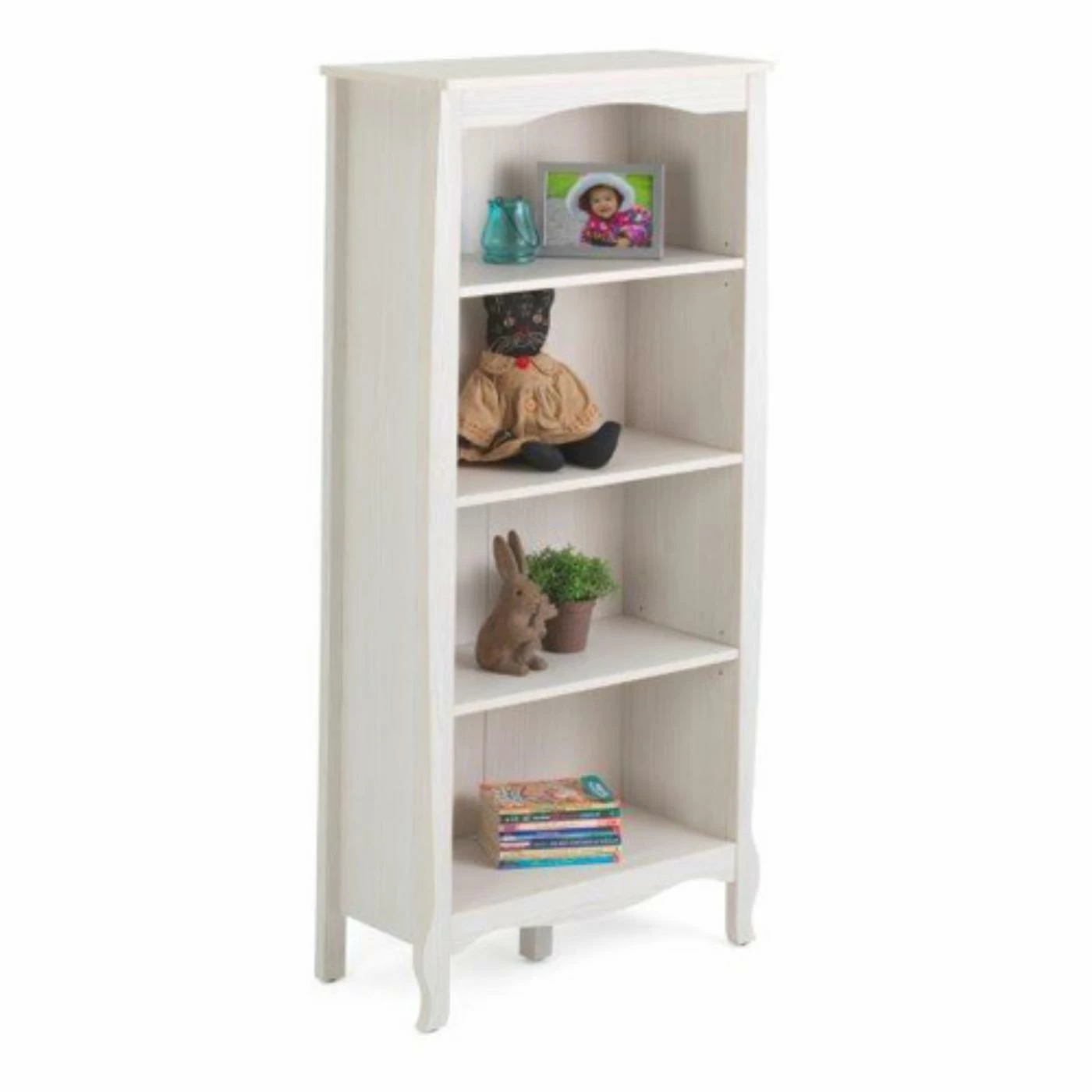 Keep all her books and toys neat and tidy in the sweetly styled design of the 4D Concepts Lindsay Bookcase. Elegantly curved accents lend a feminine flair to this bookcase that boasts four shelves, three of which are adjustable, to accommodate storage needs. This piece is solidly crafted from engineered wood, and the stone white oak finish adds a fresh, easy-to-clean surface that instantly brightens her room.