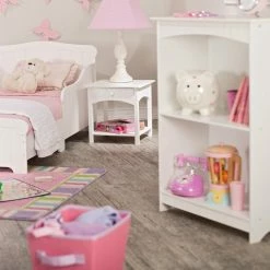 This Nantucket White Bookcase is perfect for storing books, trinkets, and other treasures. With two wide, generous shelves, an arched top,Β and charming wainscoting detail, this is a great and functional accessory for every kid’s room. The bookcase is made from durable wood composite, finished with a white non-toxic color. Dimensions: 24W x 11.5D x 32H inches.