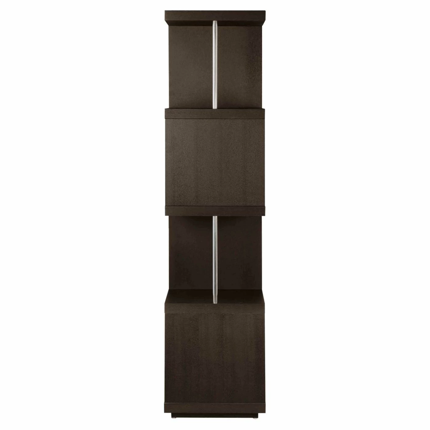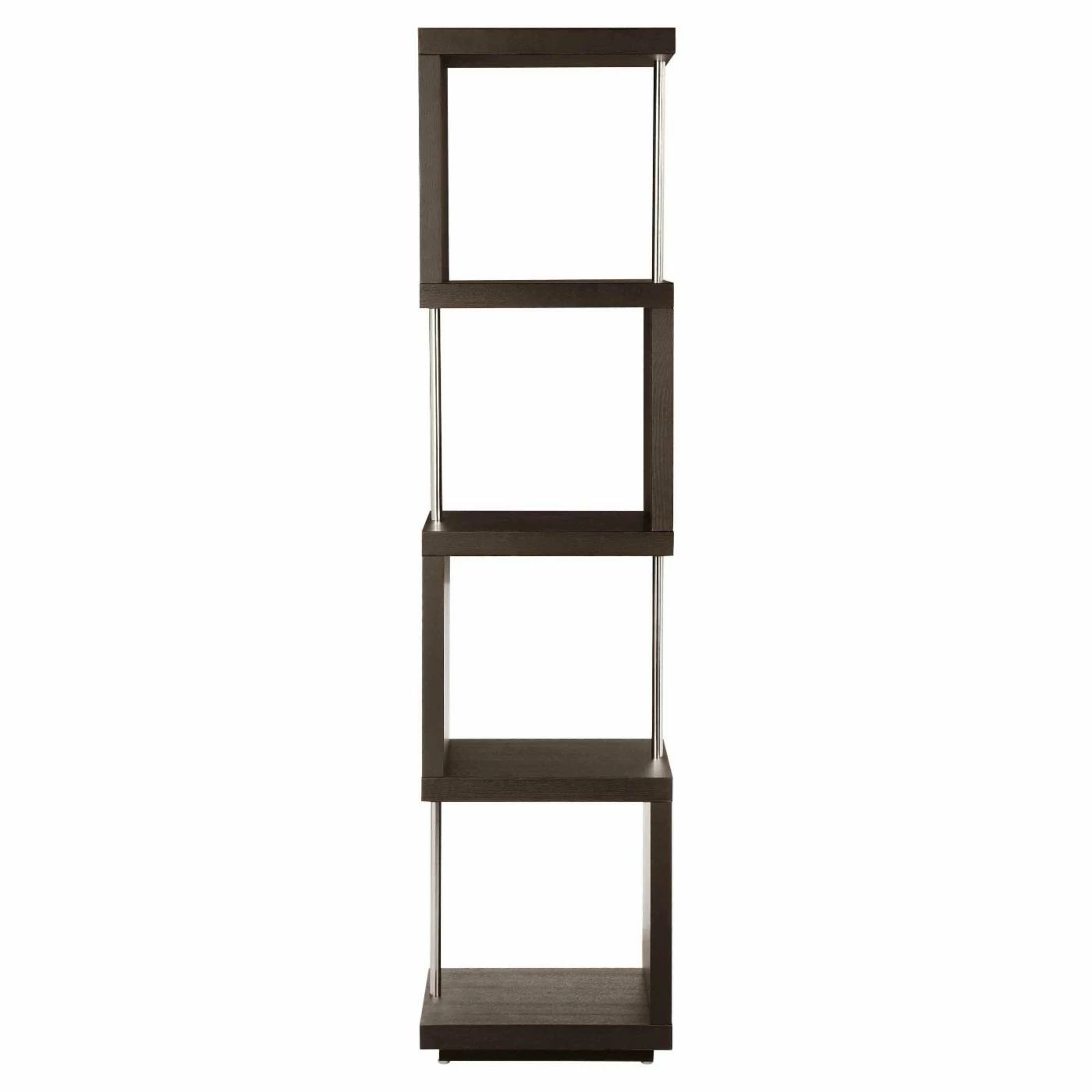 For easy organization and display, the Pangea Home Boa Bookshelf is as decorative as it is functional. Crafted from sturdy wood veneer, this bookcase features metal support rods for extra stability, with a high-polish finish to add a bold modern touch. A choice of available finishes for the wood lets you coordinate with your dΓ©cor. The tall, narrow design of this bookshelf lets you fit it easily into smaller rooms to maximize your living space.