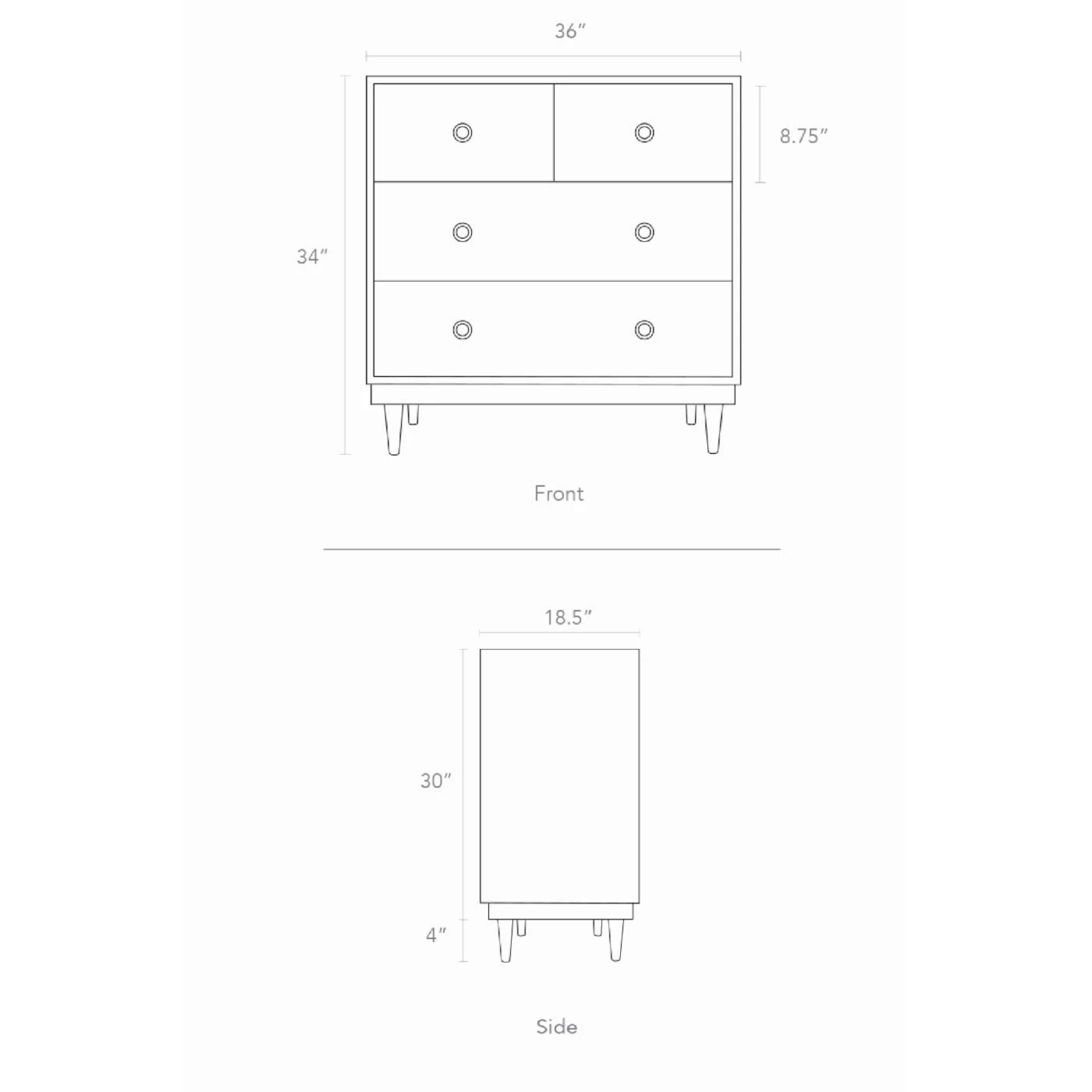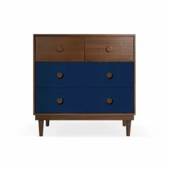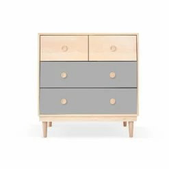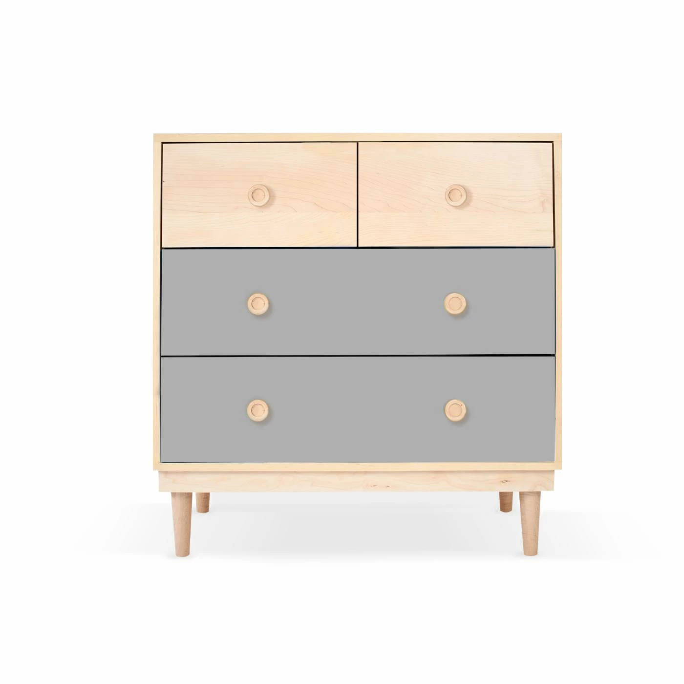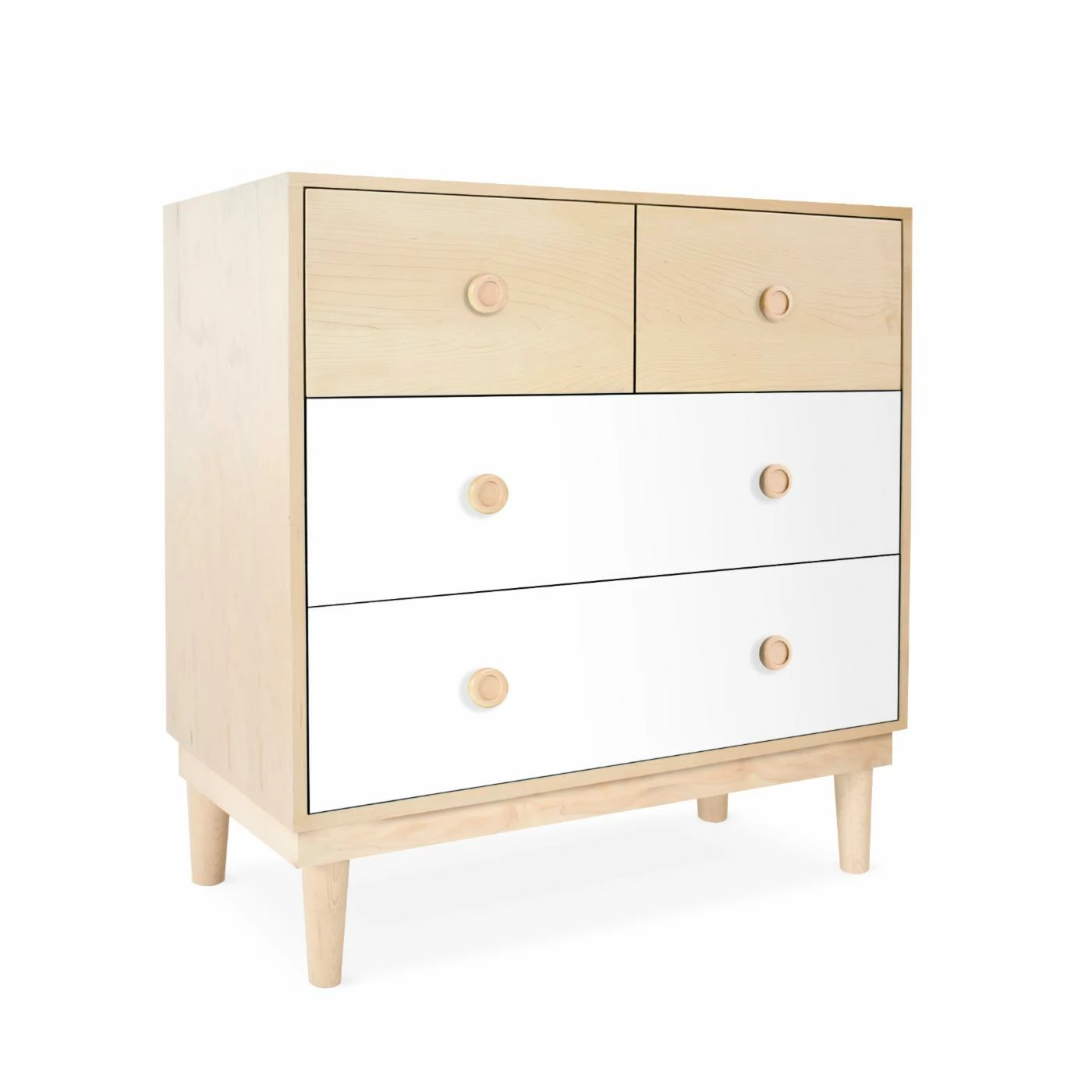 For a look that goes with a variety of styles (as your child grows into her personality), the Nico & Yeye Lukka 4-Drawer Kids Dresser features a simple, minimalist design with plenty of storage. This dresser has two smaller top drawers and two full-length bottom drawers with round wooden knobs and accommodates a full wardrobe. The tapered legs add a little mid-century modern style and the dresser comes in your choice of available two-tone finish to match the bedroom color palette.