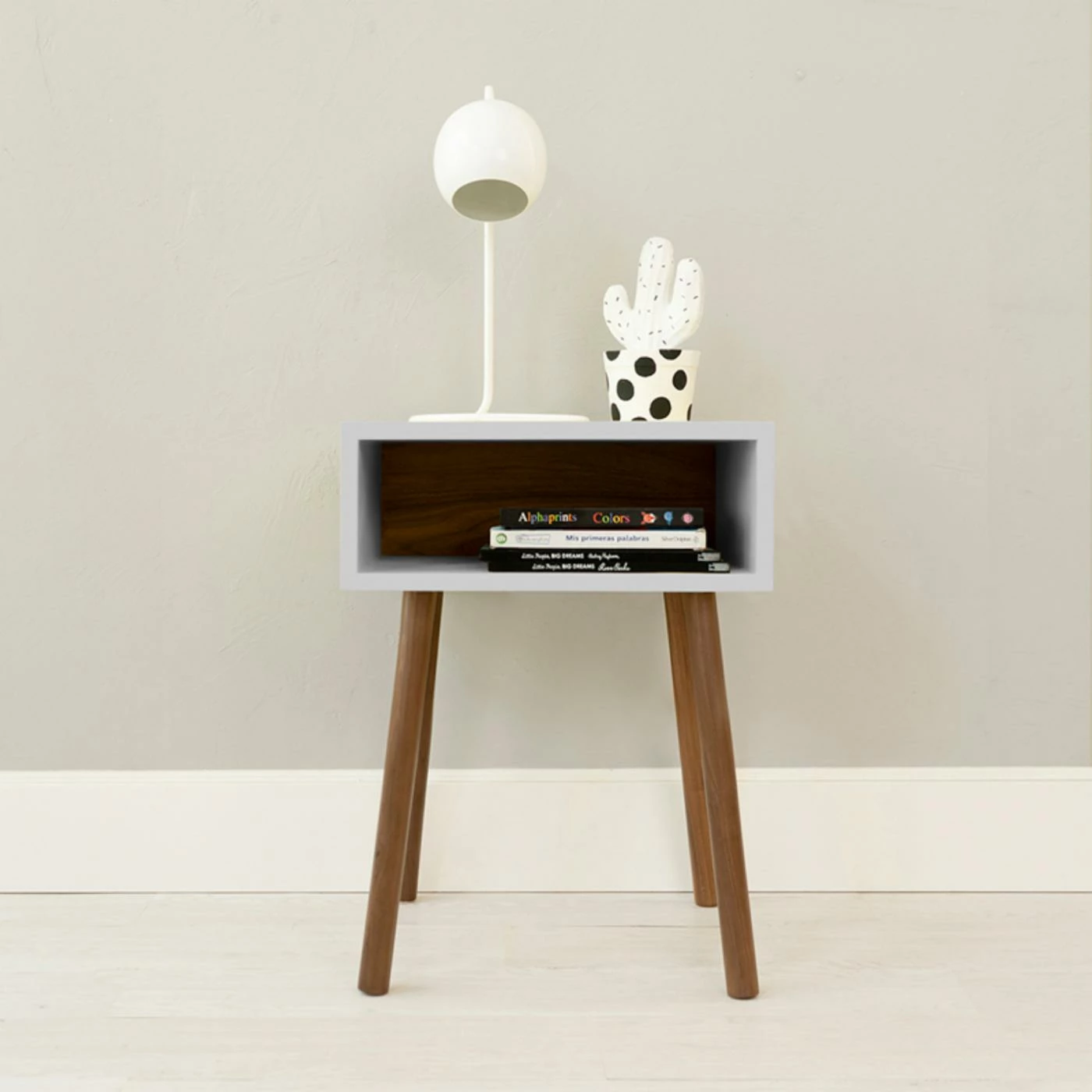 It may have a simple look, but the Nico & Yeye Minimo Kids Nightstand is a versatile bedside companion for a cozy bedroom look. Top this mid-century-inspired nightstand with a modern table lamp or retro clock and fill the open cubby space with books, electronics, and other small items to keep nearby. It comes in your choice of available two-tone finish to match the bedroom color scheme.