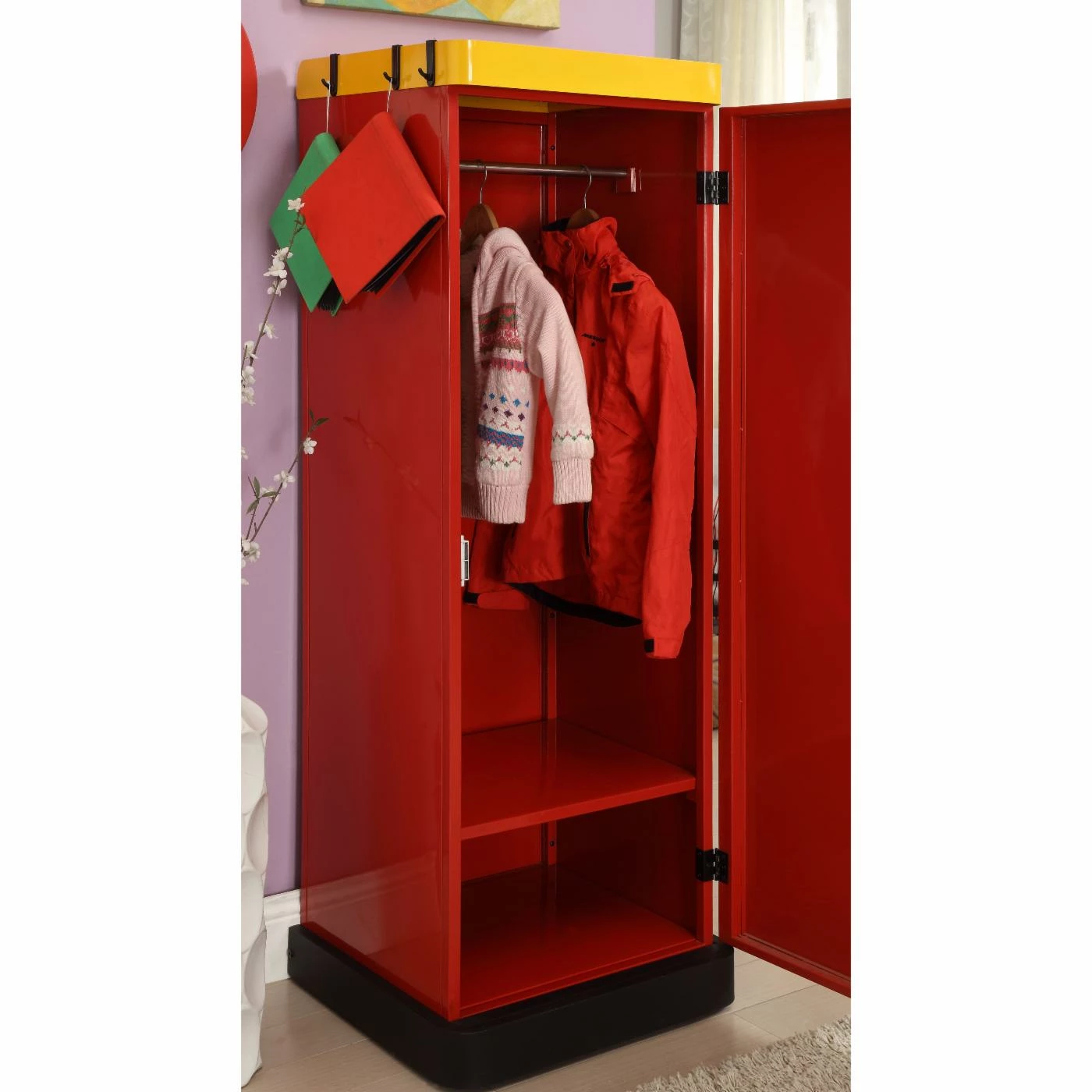 Make tidying up fun for your little one with the Furniture of America Carles Kids Gas Station Single Door Closet. This closet features a unique, vintage gas station design in your choice of available colors. The closet door conceals two spacious storage shelves and a hanging rack, with plenty of space for shoes and jackets. Some assembly required.