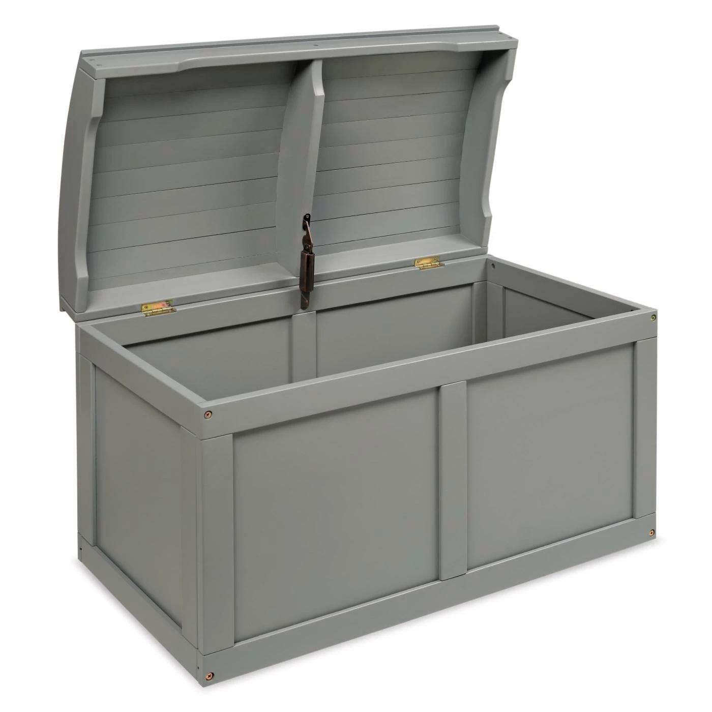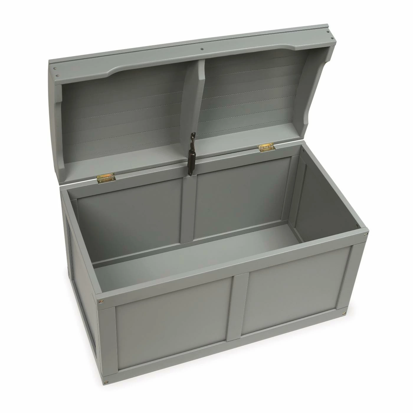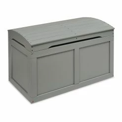 The Badger Basket Hardwood Barrel Top Toy Chest – Gray boasts an inviting look reminiscent of treasure chests of yore. The lid is safe for little hands to open and close thanks to the convenient handle slots at the front and sides. A safety support hinge keeps the lid open at any position, allowing plenty of time to rummage through the goodies inside. The spacious interior is free of dividers so that you can store even the bulkiest of toys with ease. You can also use this chest as an attractive storage space for spare linens.