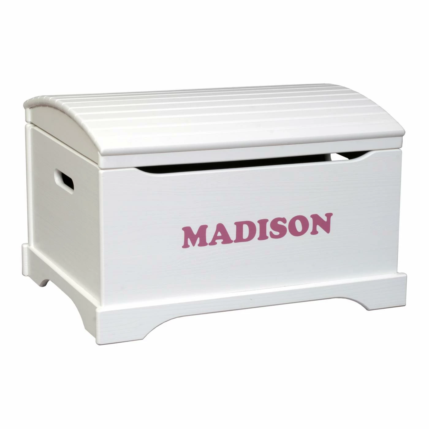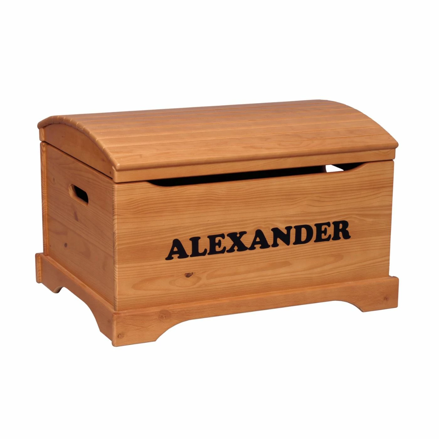Kids fight cleaning less when it becomes part of the game, as it can with the Personalized Handcrafted Captain’s Chest by Little Colorado. The slatted curved top gives this toy chest a distinctive look. Made in America by hand from solid knotty pine to last a lifetime and beyond, it comes assembled with an approved safety lid support that prevents it from falling and pinching fingers. Available either as unfinished wood or with your choice of beautiful finishes in neutral tones. Unfinished toy chest cannot be personalized because the lettering will not adhere for long-lasting personalization. Your personalization will be placed on the front panel (see alternate images), with a 1.5-inch Cooper font and an 11-character limit.