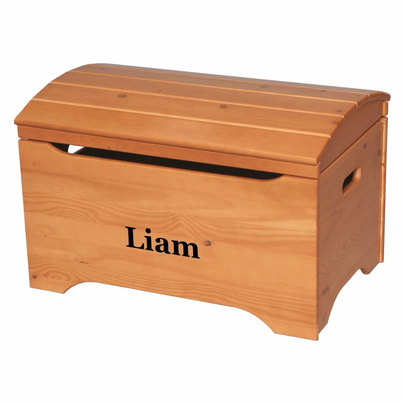 Start the process of making a cherished childhood memory today with the Little Colorado Solid Wood Toy Storage Chest withΒ PersonalizationΒ – Honey Oak Finish. With a 37 lb. body of solid hardwood and an arch top with a honey oak finish, the face of this chest can be personalized with your child’s name in your choice of black, blue, green, pink, purple, red, or white text,Β in vinyl lettering.