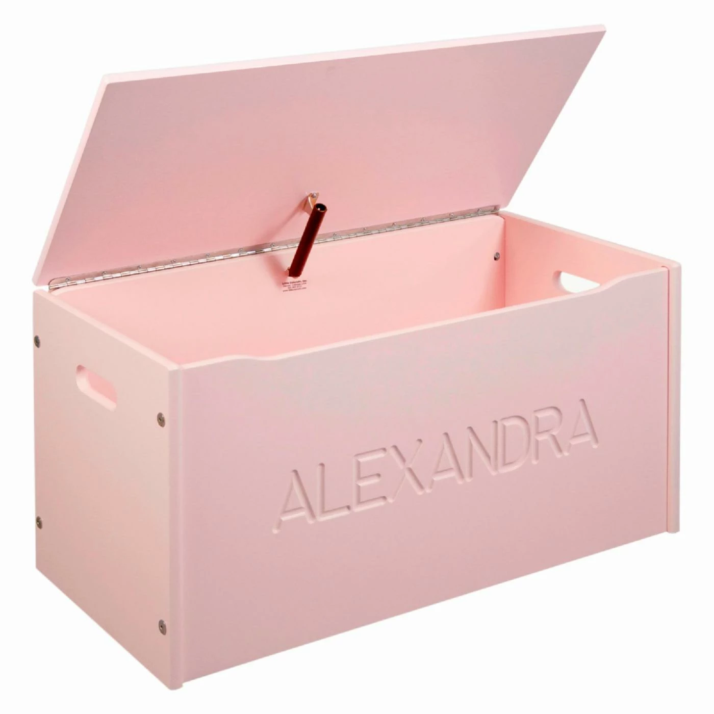 Personalized with their name, the Little Colorado Toy Storage Chest with Carved Personalization will be a fixture in their room for years to come. Constructed from solid hardwood, this 34 lb. chest features smooth and safe hinges, and is available in white, pink, and blue finishes. The name is actually carved into the wood and not appliqued. Some assembly is required. Dimensions: 30L x 16W x 17H inches.Β