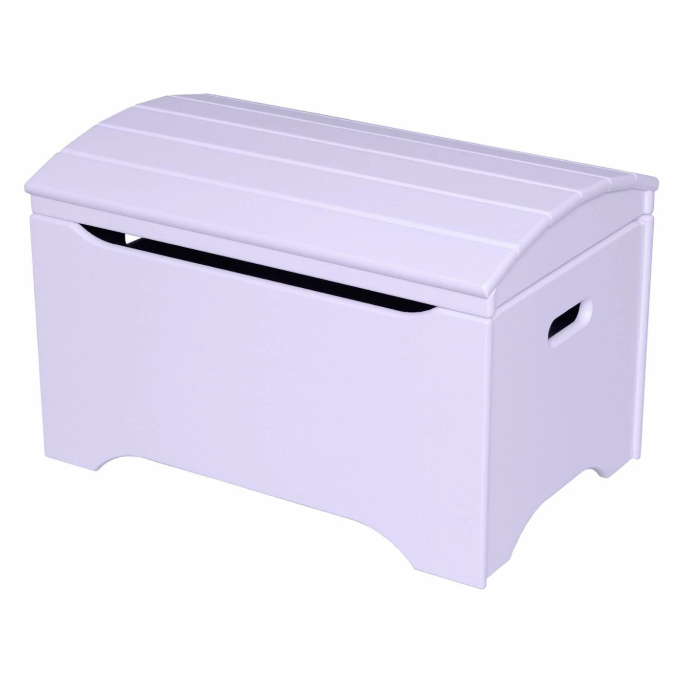 - Lavender toy chest constructed of durable hardwood