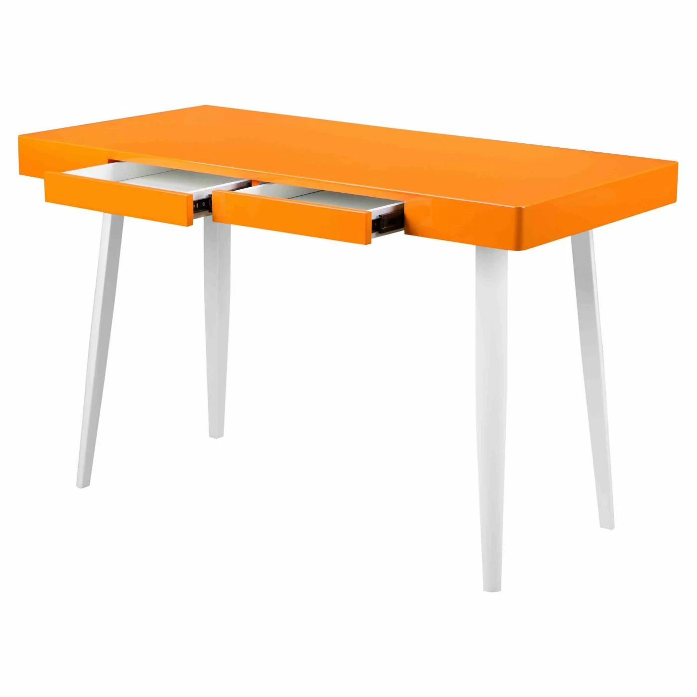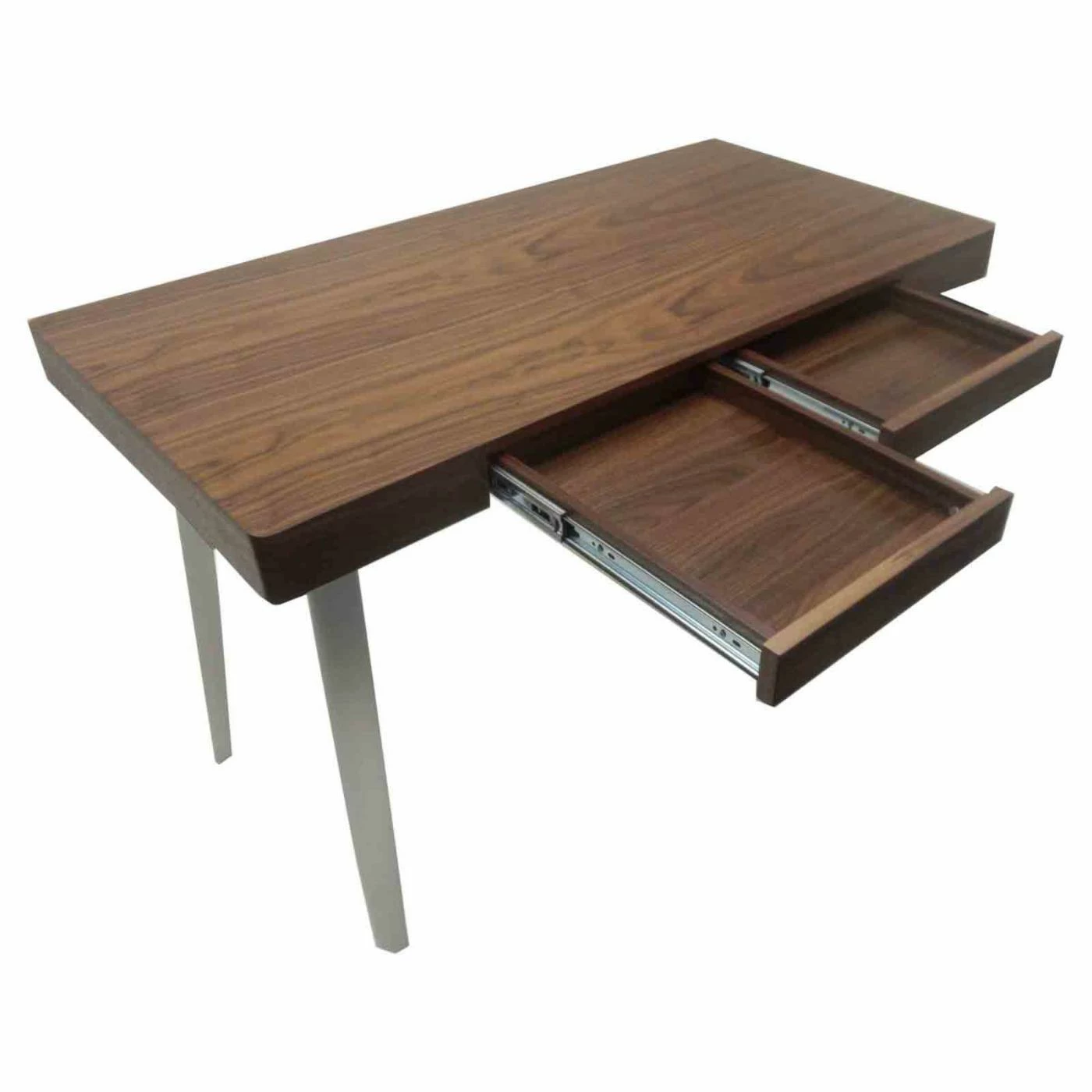 The Pangea Home Ava Deskโs minimalist design is crafted from steel and wood veneers to create a durable essential for your living room or office. This deskโs clean lines bring contemporary appeal to your living space, bringing a modern touch to classic design. Two drawers offer convenient storage for writing utensils or office supplies. The top is available in a choice of finishes to coordinate with your room.