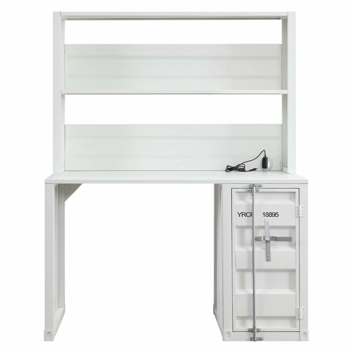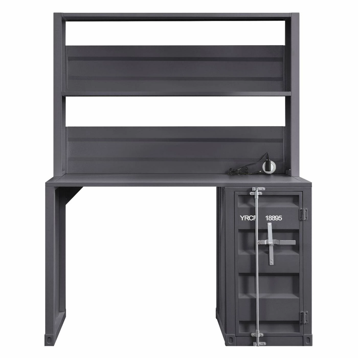 The Acme Furniture Cargo Desk and Hutch have a industrial look and ample space that makes it perfect for your dorm, bedroom, or home office. This computer desk constructed of durable iron metal in a variety of colors. It has a top compartment as well as one storage base to offer plenty of space to keep your office accessories.