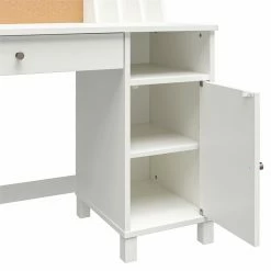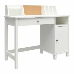 Your child can color and draw to their hearts content on the Ameriwood Home Brianna Kids Desk with Chair. Finish homework or work on art projects on the spacious desktop. The hutch makes it easy to organize folders, notebooks, and books. The open shelf and storage space behind the door provide extra storage for binders and craft supplies and keeps your work surface clutter free. The drawer is perfect for storing away crayons, pencils, and other stationary. Made of durable laminated MDF and particleboard with a sturdy real wood chair, the crisp white finish seamlessly blends with any dรฉcor. The Desk meets the CPSIA Juvenile testing requirements to ensure your childโs safety. The Desk ships flat to your door and requires assembly upon opening. Two adults are recommended to assemble. Once assembled, the Desk measures to be 32โH x 35.75โW x 15.75โD. The Chair measures to be 26.9โH x 13.2โW x 13.6โD.