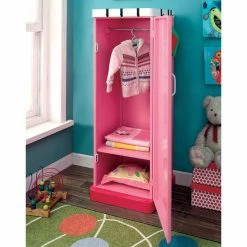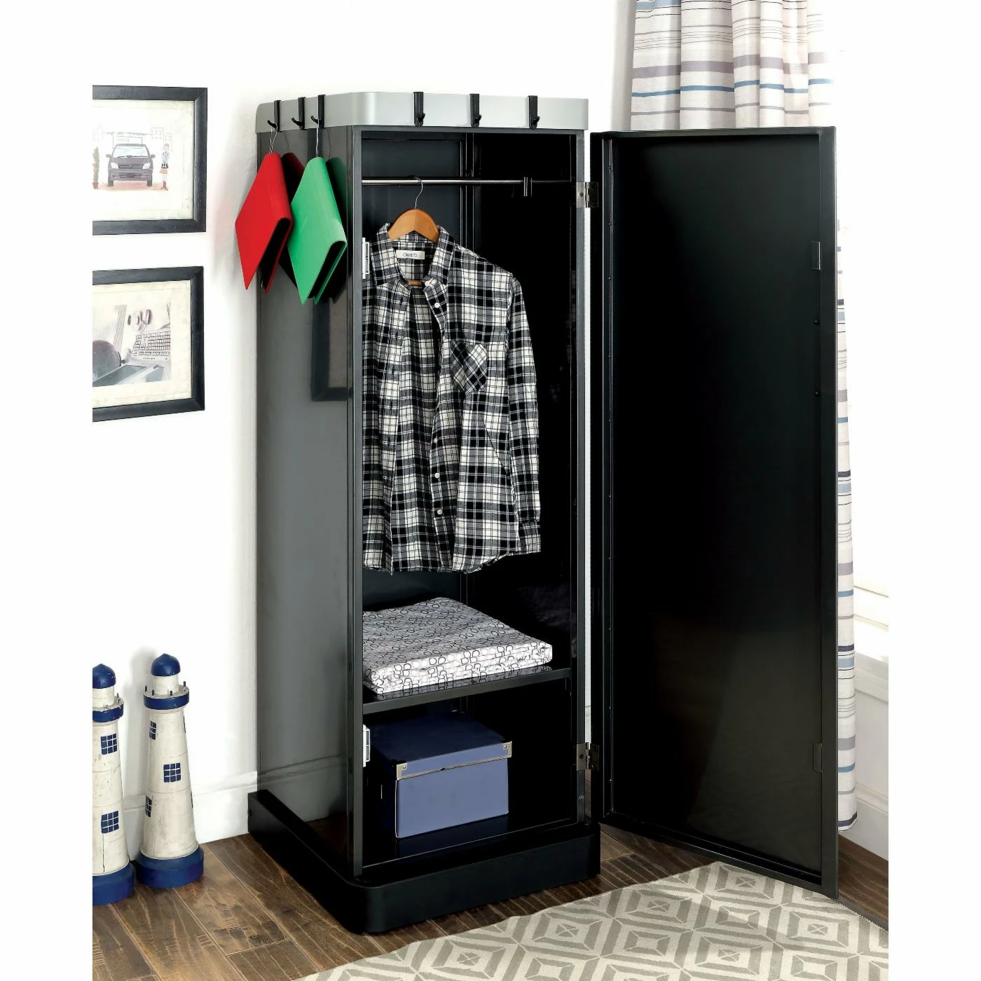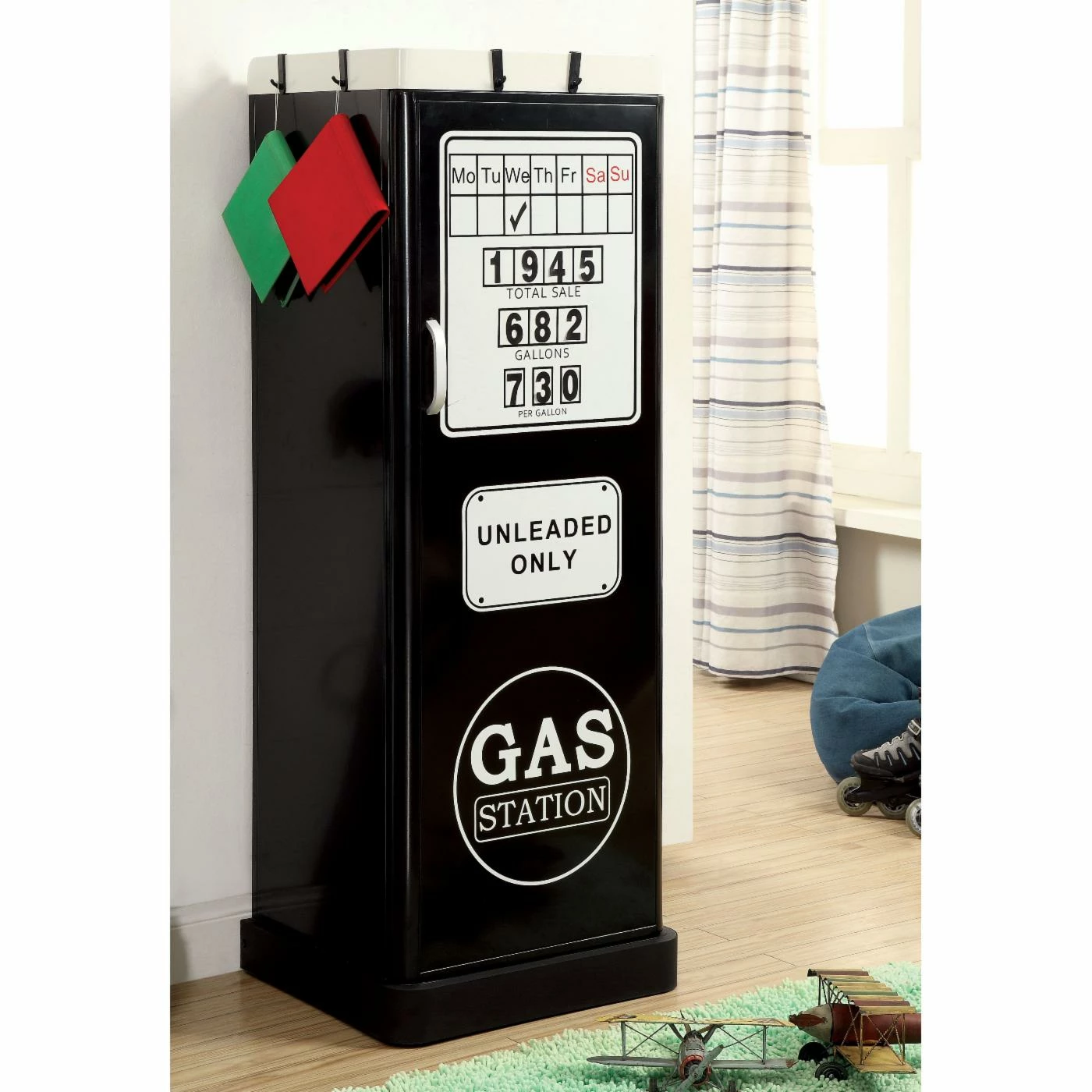The Furniture of America Lemar Single Closet adds a whimsical and vintage touch to your decor. This creative closet is designed to mimic a 20th century gas pump and features magnetic numbers and comes in your choice of finish. Its four shelves and hanging rack are perfect for keeping your child’s room neat and organized while its metal construction guarantees it will last. With its classic take on modern design, this closet could easily be used in any room as extra storage as well as decoration.