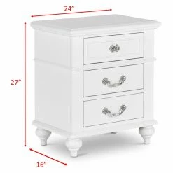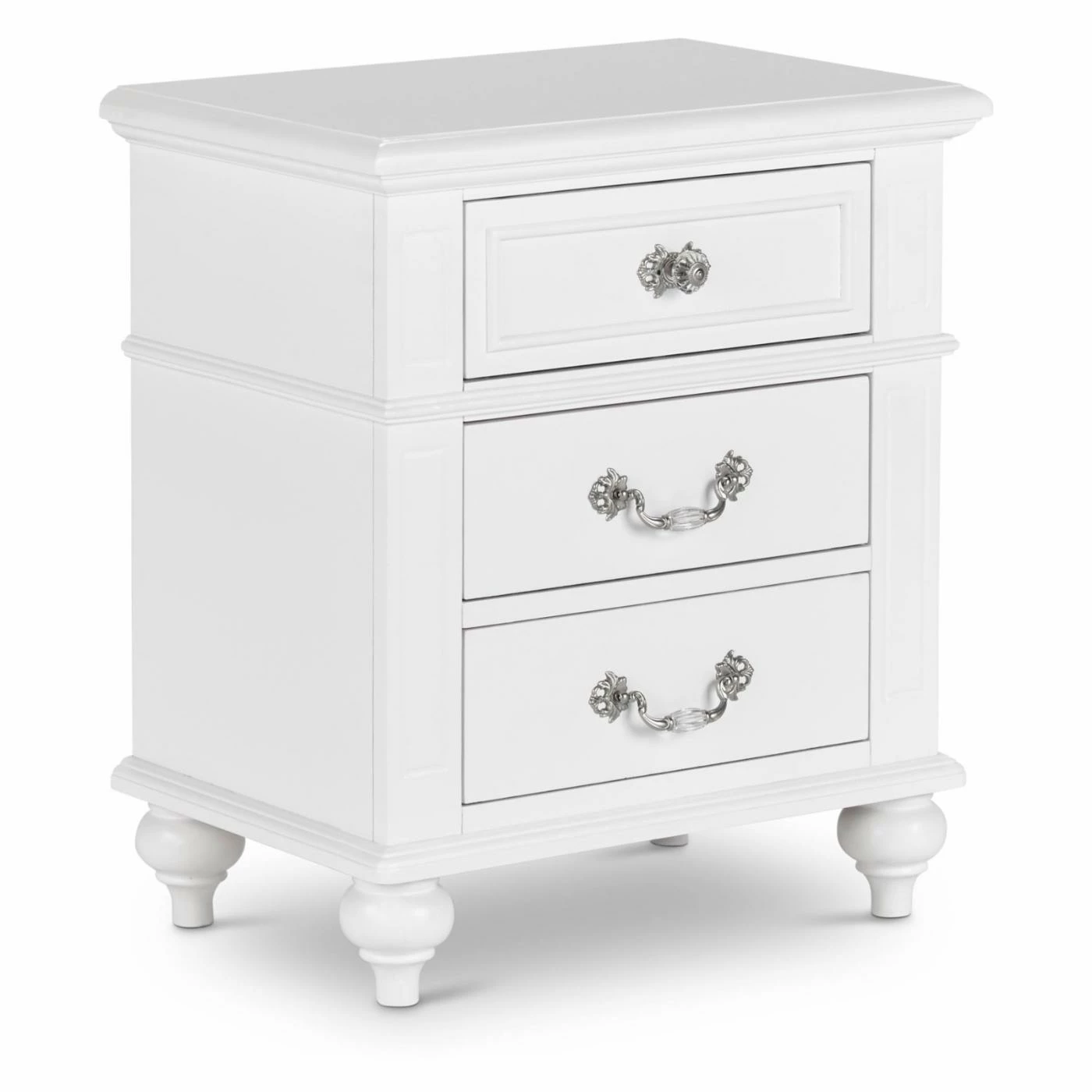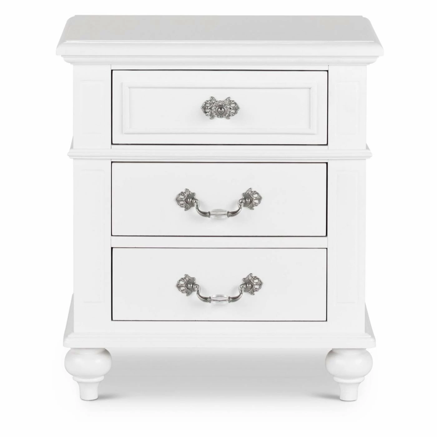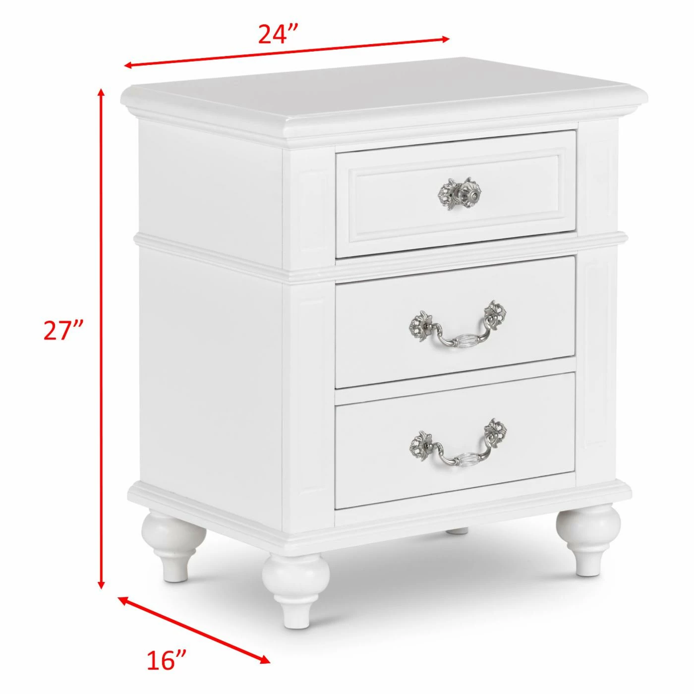 A graceful bedside companion, the Picket House Furnishings Annie Nightstand bring chic style and smart storage to your home. The nightstand is built from solid rubberwood and okoume veneers in a soft white finish. Its three drawers feature front and back English dovetail construction, kenlin metal glides, and crystal-accent knob and bail pull hardware. The top drawer in this nightstand is lined in felt to protect your most delicate valuables.